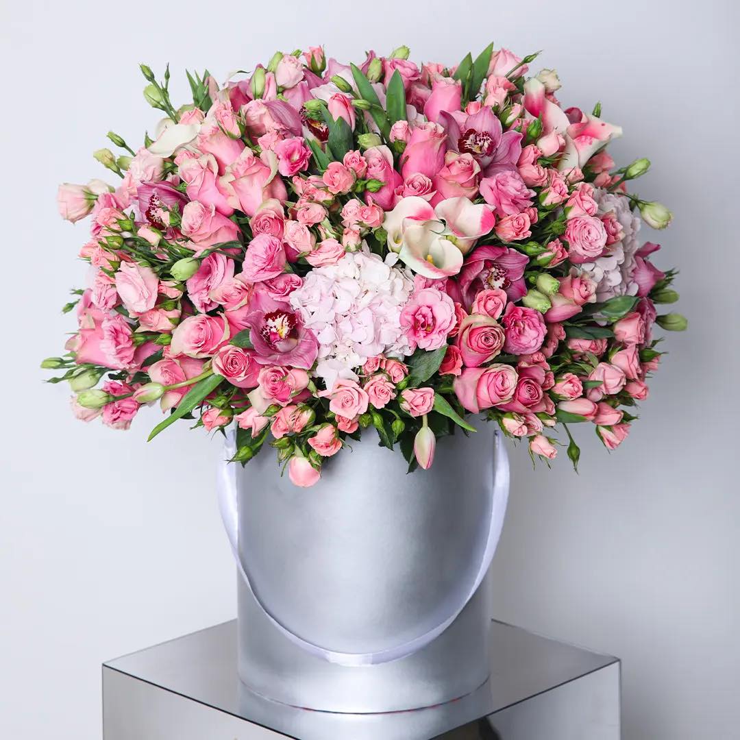 The Stefhany flower arrangement has a beautiful design, featuring a selection of colorful flowers and foliage nestled in a stylish box. The arrangement is delicately crafted to make a delightful surprise for your loved one, perfect for any special occasion.